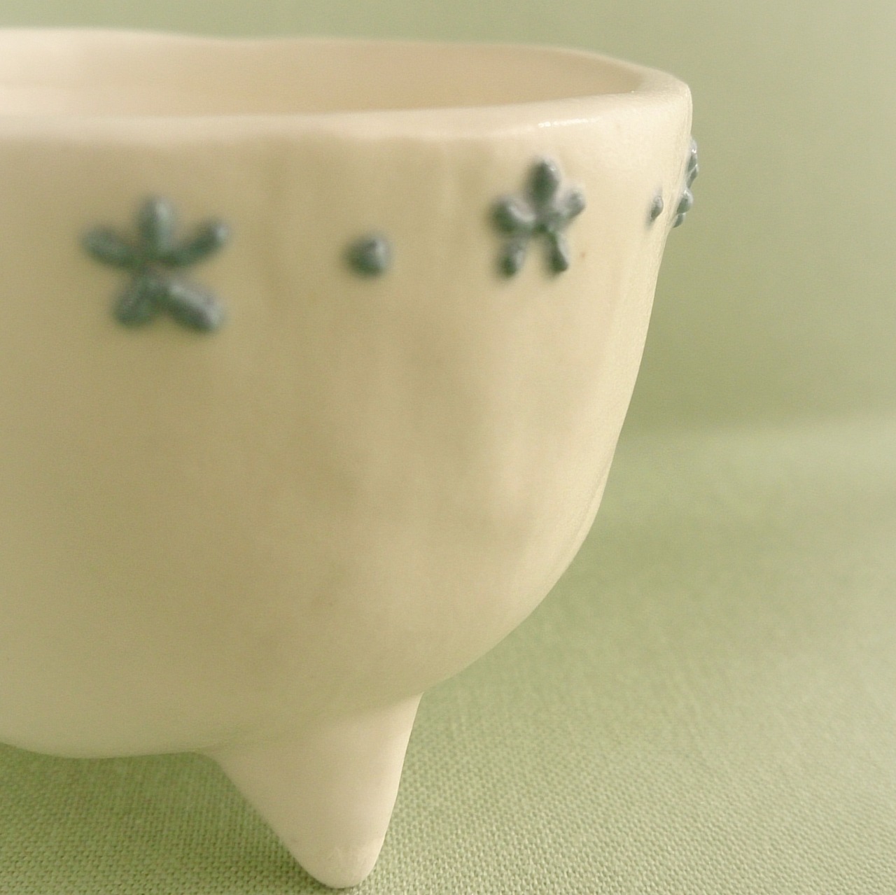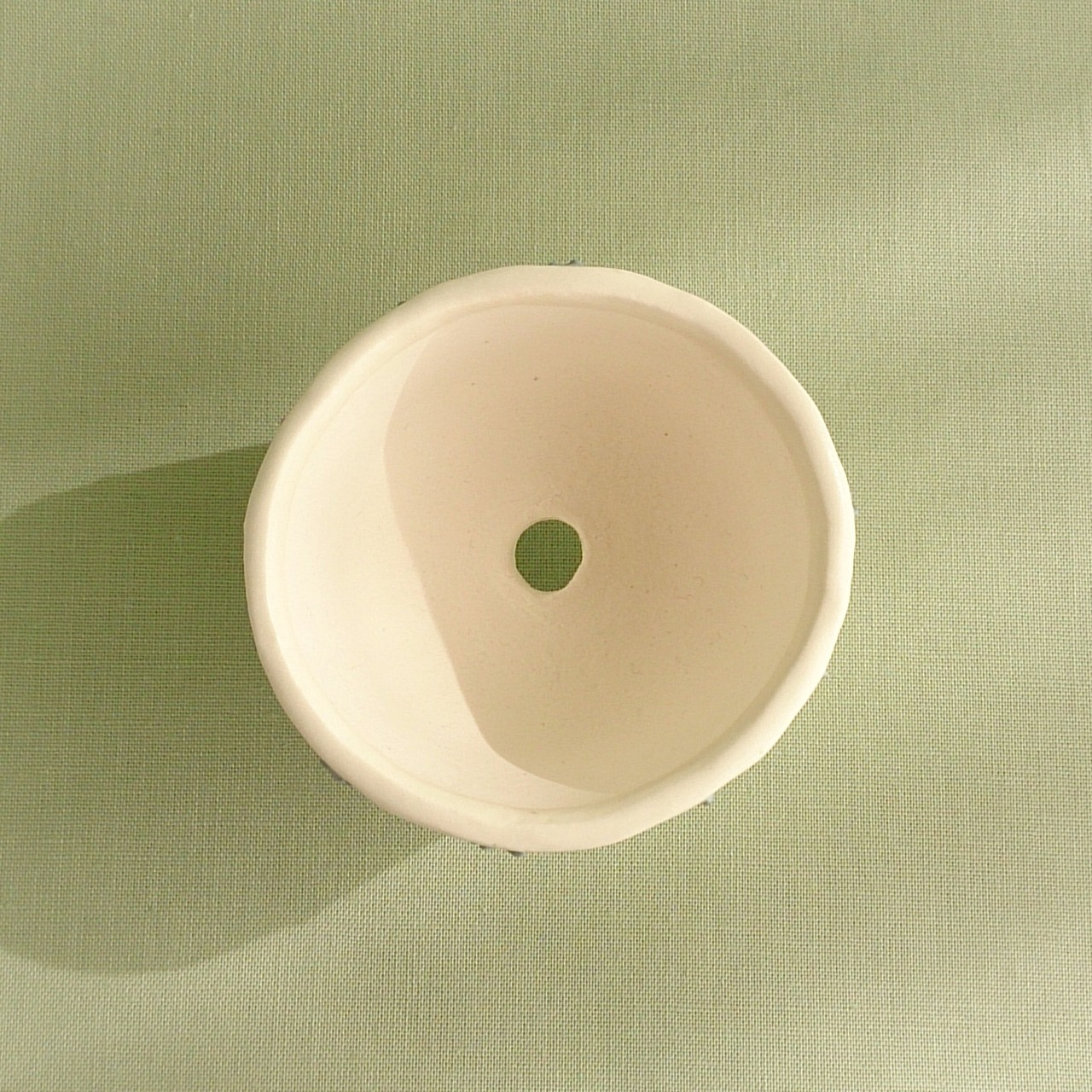 三つ足で、底に約0.8 cm径の穴を開けた小さな鉢です。